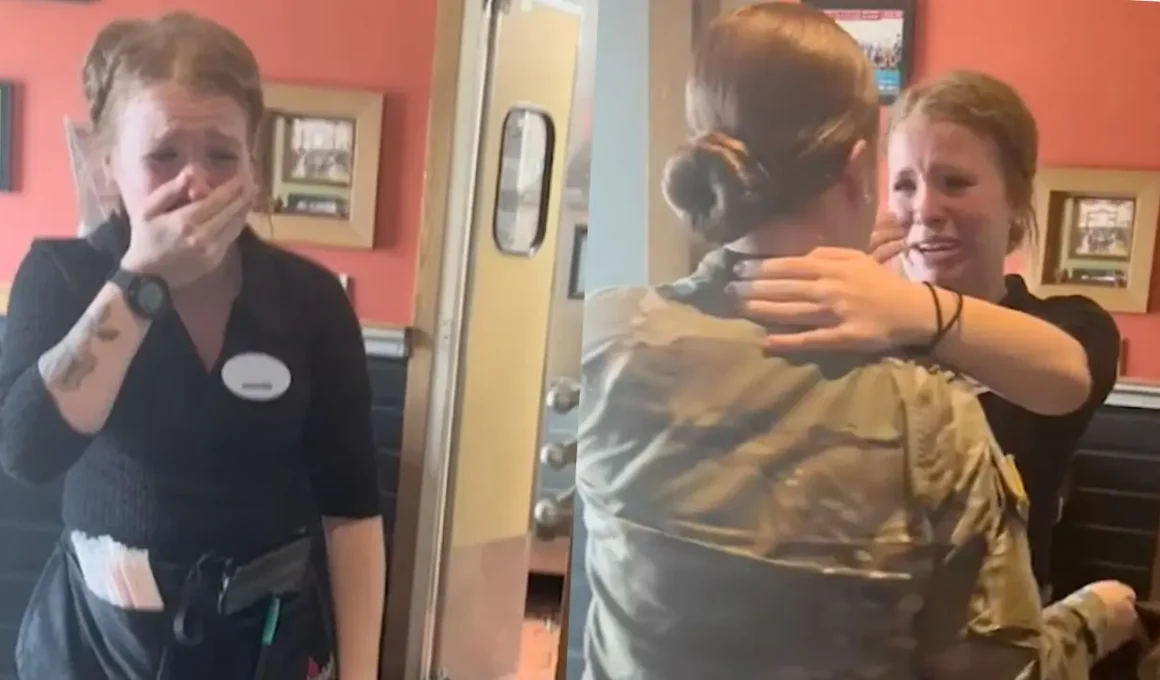 When Shay finally came back home, she wanted to surprise Jordan. Jordan works at a restaurant, so Shay went there. Jordan’s coworkers told her there was a surprise waiting outside and that she should go check it out. Jordan had no idea Shay was back! When she peeked out front, she saw Shay standing there. She was so shocked and happy that she started crying big tears, and the sisters hugged tight.