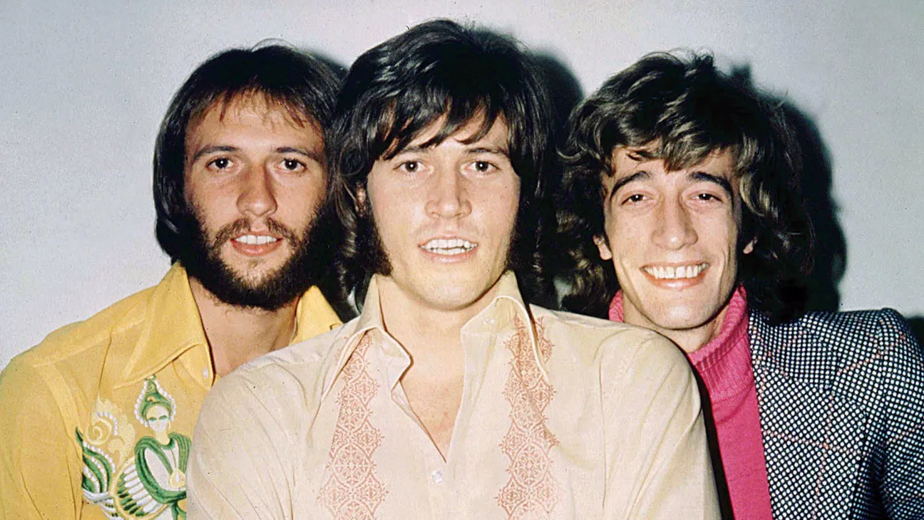 Andy Gibb, who often stood slightly apart from the original Bee Gees trio, is seen fully immersed in the fun — laughing along with Barry, Robin, and Maurice like no time had ever separated them.